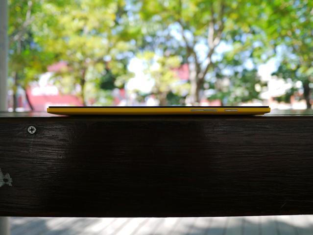 厚度蠻薄的,邊框有圓弧設計,最厚處7.9mm