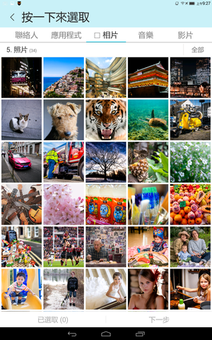 可以傳送聯絡人、照片