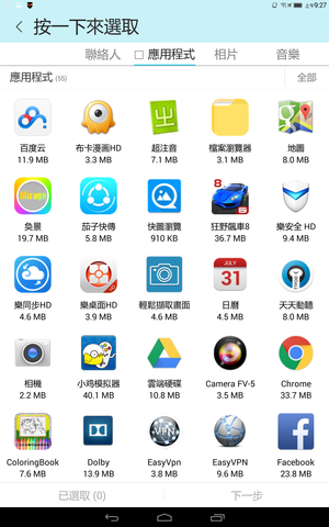 選完後,下一步,看到對方點下去