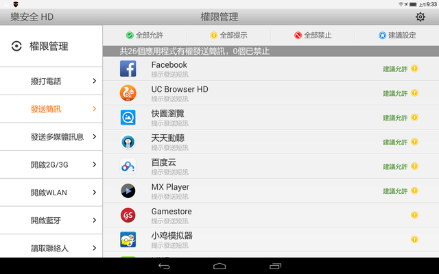 還能管理軟體的權限,避免偷發簡訊之類的