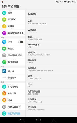 作業系統 : ANDROID 4.4