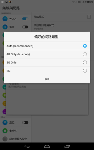 畢竟是通話平板,可以選擇 自動調整 4G/3G/2G