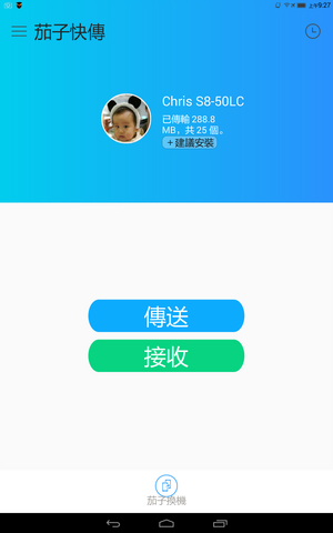 還可以跨到有wifi接收的PC跟NB(需下載PC版的茄子快傳)