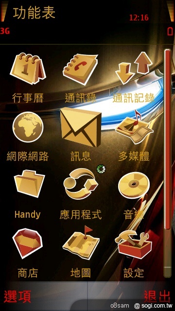 有下有拍在網路上看到鋼鐵人2的桌布那個動力源的圖案就想說如果放在桌面上作成主題就好像自己的58有個無敵動力源所以就努力學習 UI 3.4做了一個禮拜在這裡分享給大家第一次自製主題icon是 UI 內的版模,配色修改成鋼鐵人的紅橘配色下載:鋼鐵人2主題..........恕刪