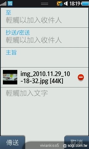 如果點選左邊的send就會進入這個畫面,圖片會變成訊息方式傳送給對方