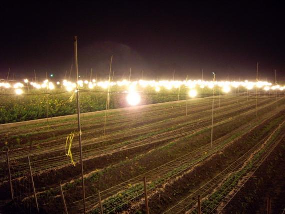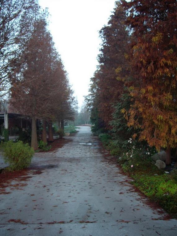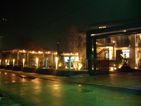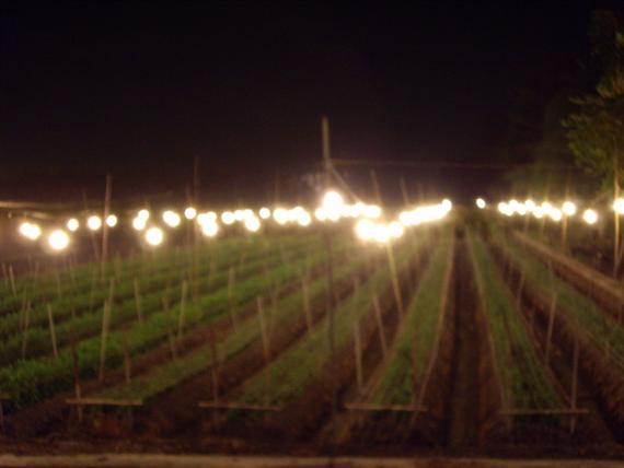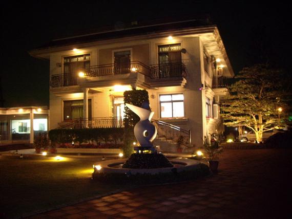 回到了花宿,親切的柯先生便帶我們到花宿的前花園"菁芳園",一進去,由於剛下過雨,在燈光及蛙鳴的襯托下,還有雨後的薄霧,彷彿來到了森林一般,有著小橋、流水和迷漫著芬多精的恬美,這時熱情的柯先生帶我們到溫室裡面,向我們介紹菁芳園的主人和整個溫室的硬體設備和許多美麗又少有的蘭花(更逢年前,他們正忙碌著包裝),並請我們喝"菁芳園"特煮的咖啡,隔著偌大的溫室玻璃,如夢幻般的湖畔景色,邊啜飲著咖啡和閒話家常,讓人不知時光的流逝,這時才知道柯先生本身是從事園藝造景工程的,也因此"花宿"的景色才會那麼的有特色。不知不覺已十點多了,柯先生便驅車帶我們看菊花燈海,一邊解說著緣由,一邊漫步在鄉間道路上,體會著悠閒自在的氣氛中……