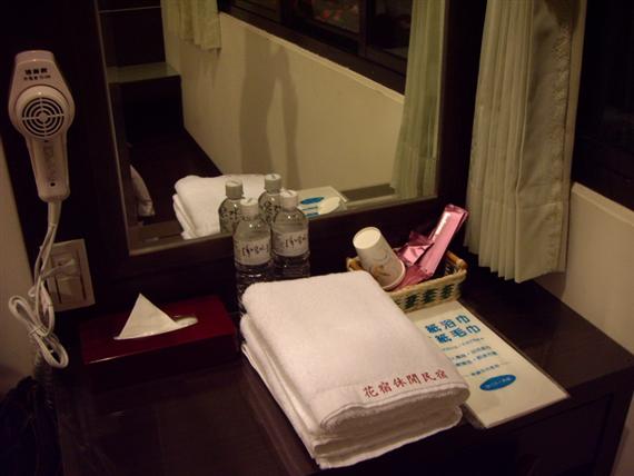 由於比預定CHECK IN的時間晚了不少,當時朱小姐並不在,在裡面員工招待下,選擇靠近門口那間雙人房,進房將行李放下後,感覺房間整齊又舒適,由於已是用餐時間,便和老婆驅車前往員林鎮用餐(老婆年幼時於田尾長大,故對此地尚為熟悉)。