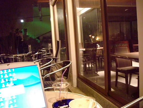 回到了"花宿"盥洗後,我和老婆坐在夜色中的咖啡座,一邊使用筆電無線上網,一邊感受著鄉間特有的夜色,直至深夜二點多才入睡。
