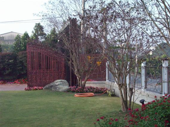 到達時天空下著微微細雨,轉進張厝巷,此時已感覺到鄉下特有的寧靜,由於當初活動的網路相片,本來以為只是普通的房子,於是和老婆張大了眼睛尋找,突然眼前一片明亮,出現一幢豪華又別緻的別墅,正和老婆想說能住這樣的房子真好,就在開過之時看到了"花宿"二個斗大的字,那時心裡真是爽……