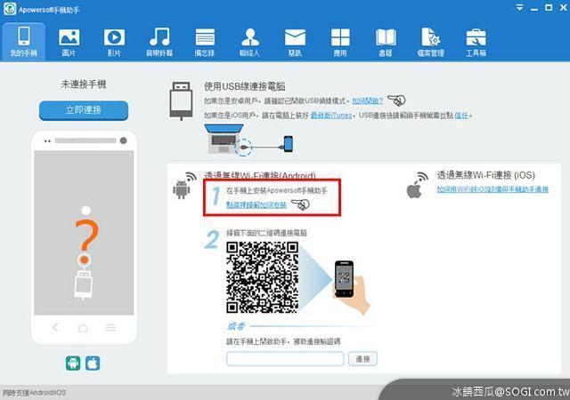 在自己的電腦上下載一個叫Apowersoft手機管理大師的軟體