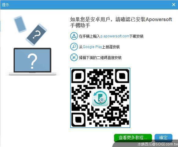 運行軟體后,根據上圖紅色框內的指示,在華為手機上安裝好Apowersoft手機助手APP