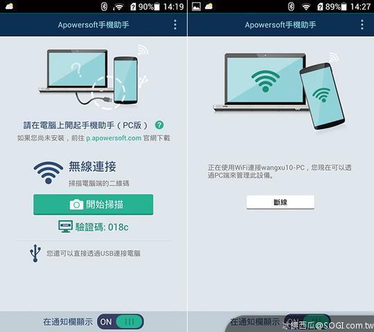 打開手機上的APP,可以通過以下兩種方式連接電腦,一種是用手機掃電腦上軟體的二維碼,一種是直接把手機上的驗證碼填入軟體下方的空框內,按一下“連接”