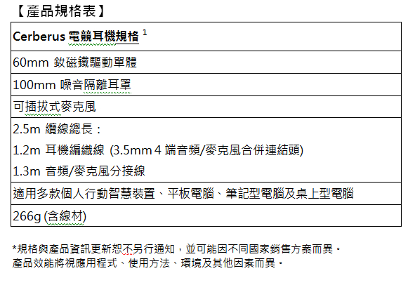 Cerberus 賽伯洛斯電競耳機建議售價:NT$ 1,990。