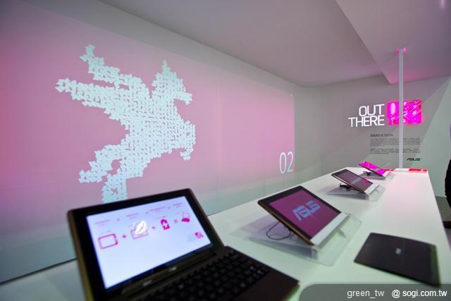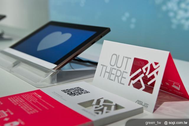 在「Out There 行空」之中,華碩運用全球熱銷的變形平板(Eee Pad Transformer)來演繹人與人、與機器間的溫暖交流,帶給參觀者全新的互動體驗。華碩變形平板熱賣,證實鍵盤對使用者的重要性。獨特可拆式鍵盤基座設計,提供使用者便利的打字需求與續航力,在俐落的造型之外更巧妙整合實用性與獨特功能,讓平板產品的使用體驗提升到全新層次。