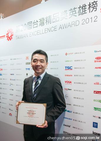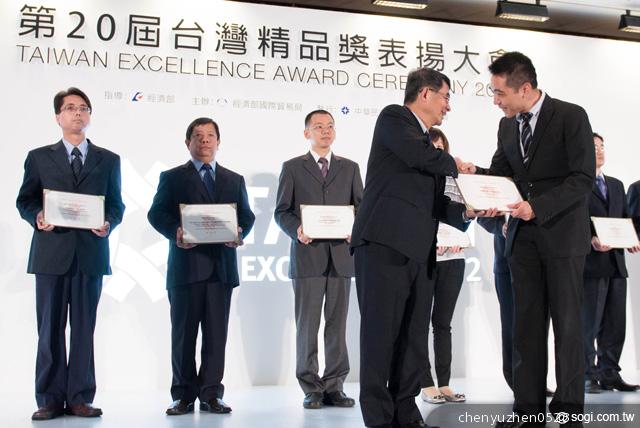 ▲台灣精品獎頒獎典禮今日於國際會議中心舉行,行銷總監楊豐澤先生(右)代表出席受獎。