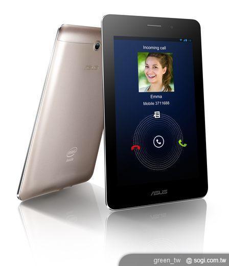 華碩 7 吋手機平板 Fonepad 擁有完整 3G 通話功能,搭載 Intel Atom Z2420 1.2GHz 處理器,高達 9.5 小時電池續航力,提供娛樂與通訊全新體驗。採用頂級 178 度超廣視角 IPS 面板,1280x800 高解析度及獨家 Super IPS+ 螢幕增亮技術,畫面清晰流暢。輕巧金屬機身搭配雙喇叭,享受最犀利的通話體驗。120 萬前置鏡頭與 300 萬畫素後鏡頭,支援最高 32GB 外接式儲存裝置。Fonepad 手機平板提供香檳金與鈦灰兩種時尚顏色選擇,是使用者最俐落有型的生活夥伴。