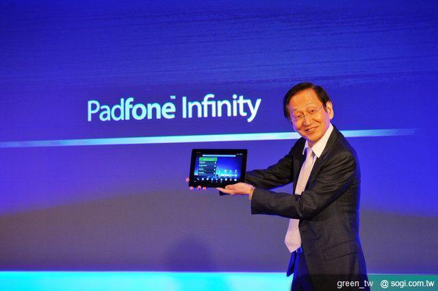 ▲華碩董事長施崇棠親自揭示旗艦變形手機 PadFone Infinity。