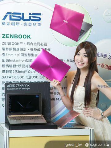 如同智慧型手機般聰敏,華碩 ZENBOOK 配備 instant-on 功能,真正做到隨開即用,無論何種情境皆 2 秒從待機回復到工作狀態。搭載第 2 代 Intel Core (酷睿)i3 處理器、SATA3.0 SSD 以及 USB 3.0,華碩獨家 SonicMaster 聲籟技術,則讓如此輕薄的筆電呈現豐富廣闊的音域與清澈音質。配件部份提供同系列 ZenSleeve 專屬皮套,魅惑黑底搭配桃紅縫線,由裡至外讓人一見傾心。繽紛桃紅版建議售價:NT$34,900。