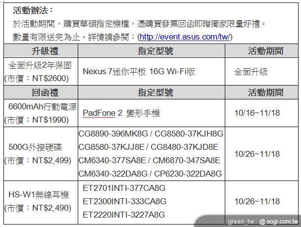 即日起至 11 月 18 日活動期間,購買 PadFone 2 變形手機,回函送 6600mAh 行動電源乙只,