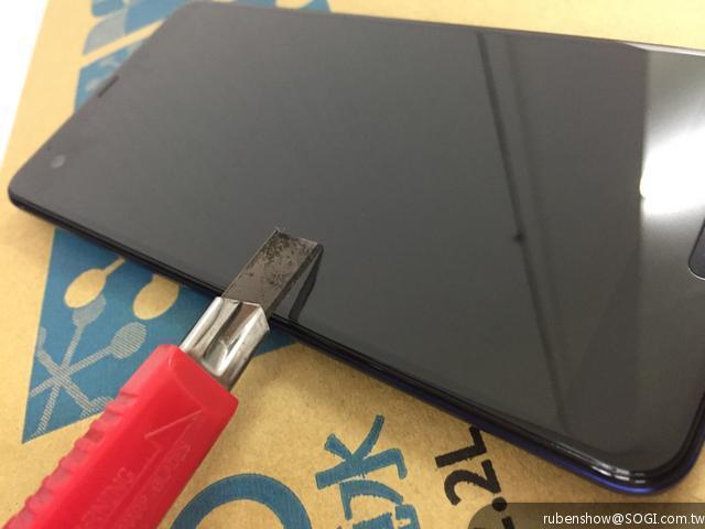 拿美工刀來刮(其實不敢很大力…)但刮起來感覺就真的像手機鏡頭那塊玻璃一樣,拿起來也沒傷痕.