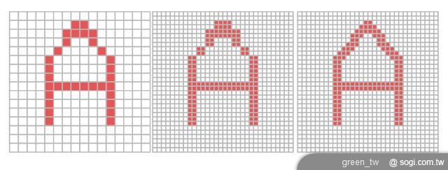 ▲左圖為原本解析度軟體呈現的情形;中間圖片是以高解析度螢幕四點模擬一點,可以避免顯示變形;右圖則是為高解析度撰寫的軟體,在高解析度螢幕顯示下,可讓圖片與文字顯示更平順銳利。