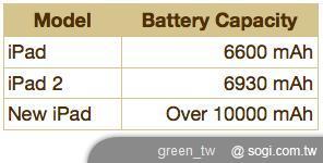 不過 LED 數量增加自然耗電量相對增加,以 42 顆 LED 加上驅動晶片,Lightbar 的耗電量約為 3 瓦上下,兩條就是 5 到 6 瓦,加上螢幕解析度增加,螢幕控制晶片要控制的頻道也同時倍增,以目前的技術單顆晶片即可達成,無需用到多顆控制晶片,但耗電量則是無法避免的事,所以新款的 iPad 使用的電池容量足足比現有的 iPad 2 增加了 50% 之多,至於電池的供應廠商同樣還是由台灣電池廠新普科技(Simplo)與順達科技(Dynapack)供貨。