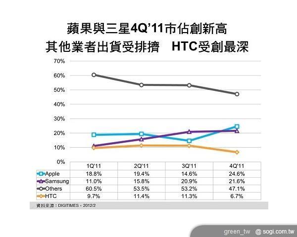 DIGITIMES Research:蘋果、三星 4Q'11 囊括近 5 成市場