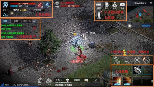 創立新職業角色進入遊戲後,系統一開始有新手操作教學,任務採自動引導玩家跟著指示完成,戰鬥也有分自動/半自動/手動三種模式,近年來手遊似乎偏向方便玩家能自動掛機的設計,遊戲畫面也走復古風格路線,只是人物和怪物設計個人覺得過小,用手機玩久了眼睛真的有點吃力,比較建議玩家能改用模擬器大螢幕玩。