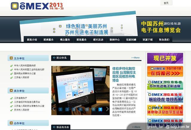 展覽簡介:2013 年 eMEX 以「十二五」為方向,倡導轉型升級、綠色、低碳發展理念,以節能減排為重點,加快建構資源節約的生產方式和消費方式,增強可持續發展能力。展會以電子製造產業為核心,緊扣【蘇州先進電子製造及環保展】和【消費電子及數字生活展】,同期新增【智能科技應用展】、【兩岸智慧城市交流展】、【數字學習設備與文化創意展】,將傳統電子製造企業轉型升級、兩岸智慧城市建設以及數字學習與文化創意等展示應用成果,用一核五展搭配展會相結合的方式,進行展示、會議、互動與體驗。