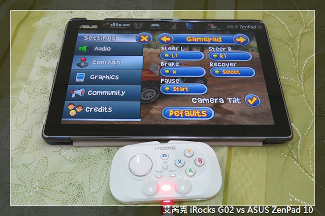 ▲ 長按i-Rocks G02上之Link鍵,即可在ASUS Zenpad 10上使用藍芽連線GAMEPAD。▲ 筆者遍尋許多遊戲,終於找到一款支援藍芽遊戲手柄的動作類型遊戲,Beach Buggy Blitz,其實這也是筆者多年前參加華碩Nexus 7跟TF700、TF600三合一體驗會中所DEMO的遊戲,也是趣味競賽拿獎品的競賽遊戲。