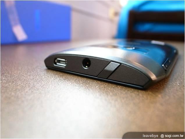 手機頂部由左至右依序是mircousb孔、耳機孔和電源鍵