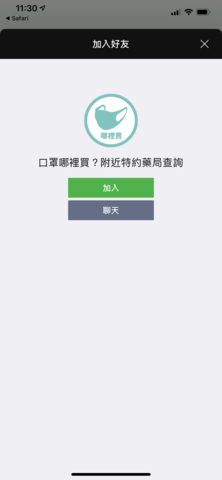 首先點選「 哪裡買口罩?附近特約藥局查詢 」加入為好友。