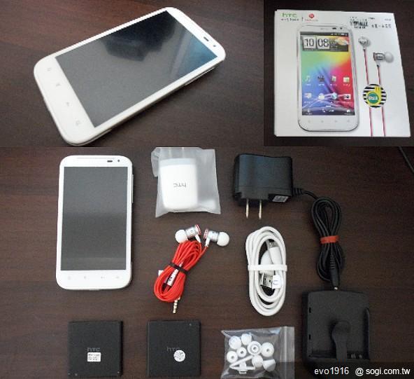 配件有:HTC Sensation XL 手機一支,原廠電池*2,原廠傳輸線*1,原廠旅充頭*1,原廠耳機*1