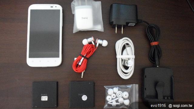 配件有:HTC Sensation XL 手機一支,原廠電池*2,原廠傳輸線*1,原廠旅充頭*1,原廠耳機*1
