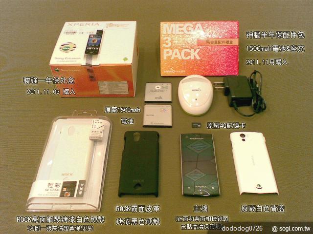 賣Sony Ericsson XPERIA Ray白超級大全配(圖1圖2全部一樣不缺) 2011.11.03購入聯強保固一年,買來時就貼螢幕保護貼跟裝外殼(一次買兩個) 所以外觀幾乎沒刮傷、沒摔機、沒維修、沒故障、沒泡水、沒刷機(歡迎當面鑑賞滿意在購買) 也於日前請門市升級為最新2.3.4版,也因為這樣讓我在門市把玩到三星NOTE 因為本人從事平面設計對於他的內建觸控筆很有興趣,因此讓我又動了敗新機的念頭ˊˋ 所以這個外在很有質感(白色背蓋搭上白色鋼琴烤外殼真是美呆^^拿起來有種優越感) 內在拍照更是水準之上的Xperia ray,誠心尋找好好愛護他的新主人= =... 現在空機8600+神腦配件包590+雙殼700=9890 最後下殺只要7900!!台中市可面交(當場驗貨也比較沒爭議), (即時通smalldog0726或聯絡我0972085765)