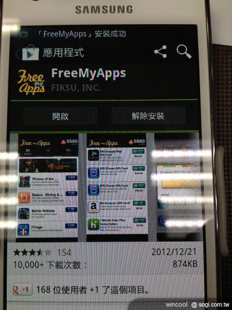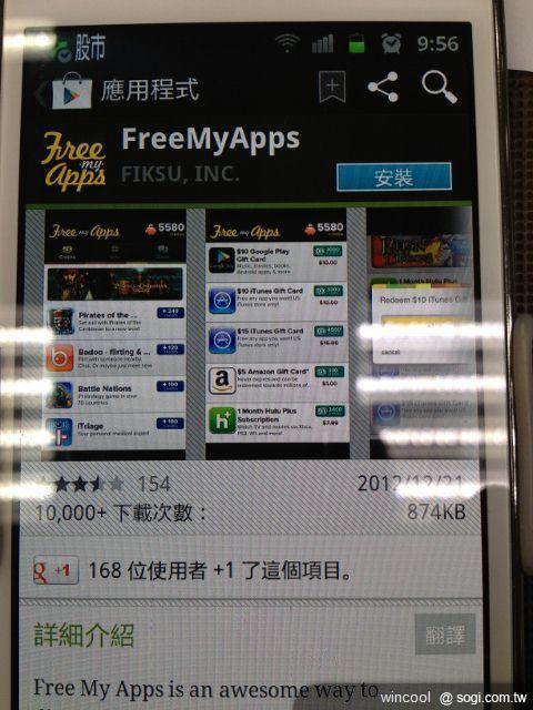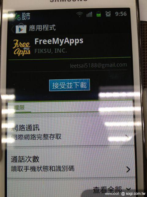 點進去後,就會到GOOGLE PLAY裡面 看到 FreeMyApps之後,點安裝