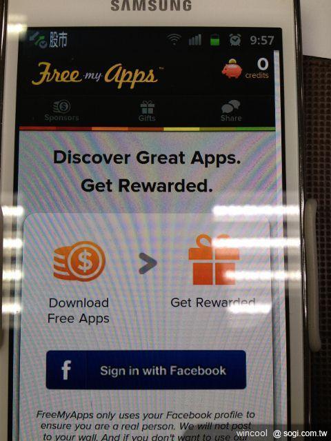 一進入FreeMyApps 首頁 要先登入FB帳號,他會把你所得到的點數,記錄下來,等點數達到3000的基本盤 就可以換得GOOGLE PLAY的 錢或是亞馬遜的現金,任你選擇!!