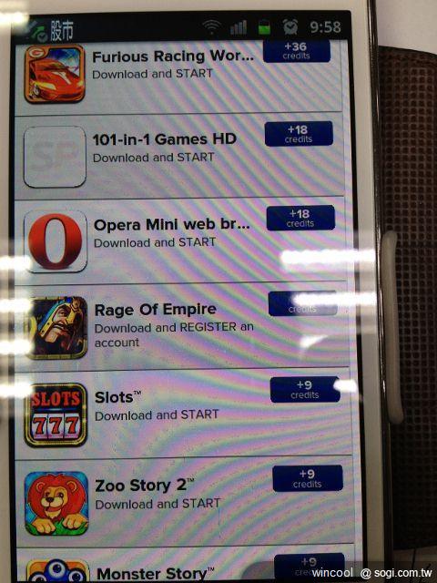 只要下載他指定的程式,開啟大概30秒~到1分鐘,點數就會入帳