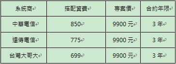 註2:電信綁約資費表