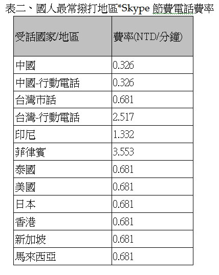 * 國人最常撥打地區參考 NCC(國家傳播委員會)2013 年 10 月公告台閩地區國際電話去話分鐘數統計。