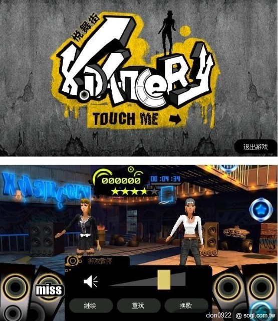 這是越舞街,有中文介面,可以用手機內的音樂來當背景,但是不是每首歌曲都可以被分析過關(很怪