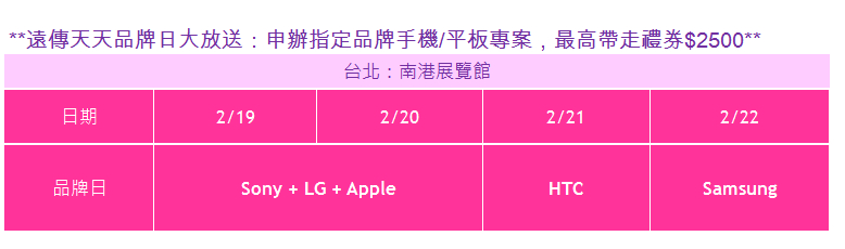 - 活動內容 / 手機價格 / 款式 / 顏色 / 配備 / 數量以現場銷售為主。
