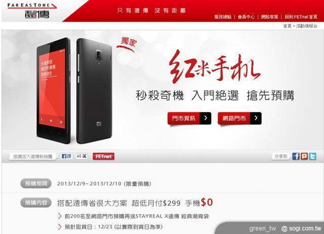 遠傳電信今(9) 日宣布與小米獨家合作推出市場最強超值神器「紅米手機」,搭配遠傳省很大方案超低月付 $299 起,獨家紅米手機 $0 帶回家!一推出就造成市場旋風的紅米手機,單機價格不到四千元,規格配備直逼中高階機種,搭載聯發科 1.5GHz 四核心處理器、友達 4.7 吋 IPS 視網膜觸控螢幕、主鏡頭 800 萬畫素,並配備操作簡單直覺的 MIUI V5 作業系統,超高性價比堪稱市場之最,肯定是您入門的絕佳選擇。紅米手機即日 14:30 起在全省遠傳門市、網路門市開放預購,多樣化資費組合提供消費者更全方位的選擇。