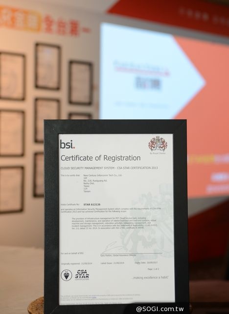 註 *:全球第三家金牌認證係指採用現行之 CCM (Cloud Control Matrix) 1.4 版為評鑑準則。