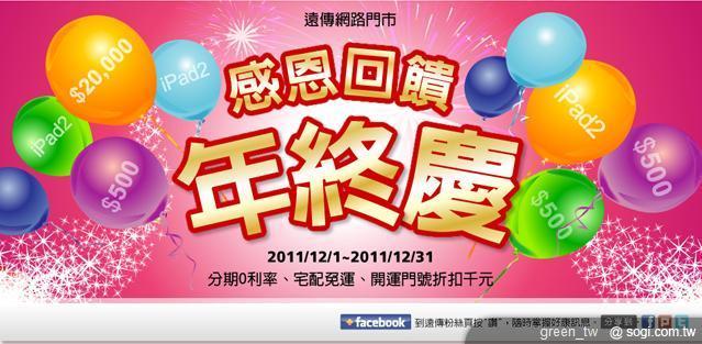 網路門市感恩回饋年終慶送禮券再抽 iPad 2