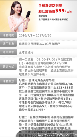 那個是免費保100萬的傷害險~當然保險金額多寡是看個人,我覺得辦漫遊送保險,至少出外旅遊多一分保障