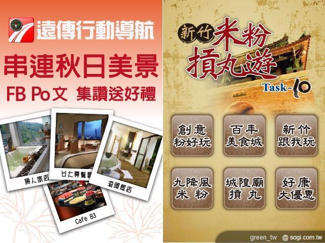 新竹地區一年一度的盛事「米粉摃丸節」將在 10 月 20-21 日熱鬧登場,新竹市政府今年特別邀請交通大學、遠傳電信和大輿資訊合作設計免費的「遠傳行動導航 APP-新竹米粉摃丸遊」讓消費者在品嚐美食之餘,更能深入解米粉摃丸的歷史文化,探訪 50 家新竹重量級米粉和摃丸業者的美味秘密、600 多個特色地標,150 多個新竹小吃推薦,即時隨身體驗 100 個新竹特色景點 720 度環景,還有 30 條跟年輕人一起吃米粉貢丸騎單車遊玩新竹的行家路線,實在不容錯過。