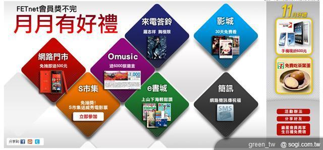 「月月有好禮」專區網址:http://www.fetnet.net/free/