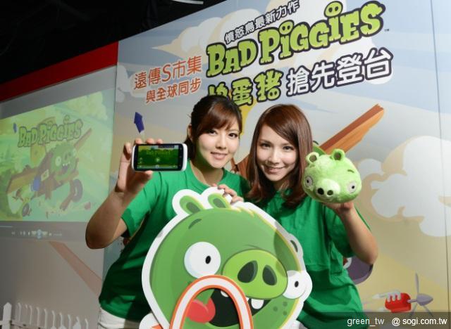 為讓台灣的消費者搶先體驗「Bad Piggies 搗蛋豬」的搗蛋功力,遠傳電信搶得先機,獨家引進「Bad Piggies 搗蛋豬」於遠傳 S 市集搶先登場,邀請所有搗蛋迷們與全球同步共享 One Day Green Fun!