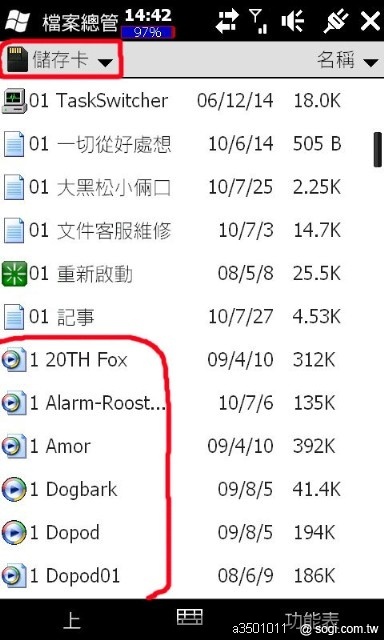 鬧鐘鈴聲使用mp3須加裝SPB Time,存記憶卡安裝.cab後註冊,共7個系列: